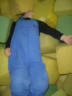 Here he is all blissed out in the foam pit.