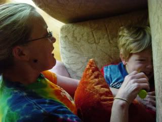 Here's the only pic we have so far of Conrad and my Mama. My Mom is in town for 10 days! Anyway, here she is getting a hang of brushing Conrad's teeth! Boy, he sure does love it. ;)